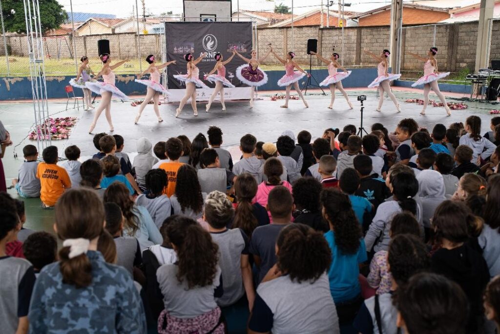A Cia de Ballet Arnea apresenta em Campinas, nos dias 30 de setembro e 2 de outubro, o espetáculo “O Corsário – Le Jardin Animé”, com objetivo de aproximar a dança clássica de estudantes de escolas públicas. Nas sessões gratuitas em duas escolas estaduais, os personagens Medora e Gulnare passeiam por um jardim imaginário que floresce no palco, em um momento de plenitude e delicadeza em meio às adversidades da trama.