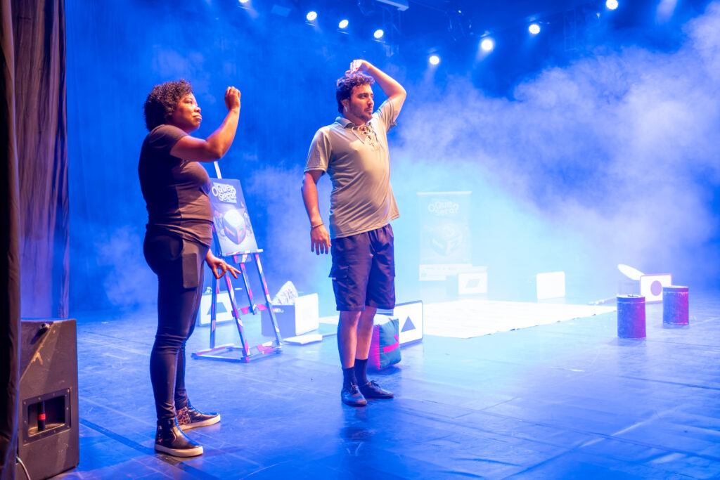 Misturando teatro, literatura, música e reciclagem criativa, o espetáculo convida o público a participar de uma jornada interativa: a cada jogada de dado, os personagens embarcam em uma nova aventura, seja uma fábula, uma dança, uma brincadeira ou a construção de brinquedos feitos com materiais recicláveis.